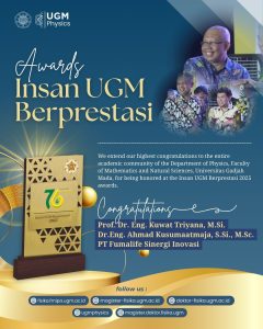 Yogyakarta — Departemen Fisika FMIPA Universitas Gadjah Mada kembali menorehkan prestasi membanggakan melalui raihan tiga penghargaan pada ajang Insan UGM Berprestasi 2025. Penghargaan ini diberikan sebagai bentuk apresiasi universitas kepada sivitas akademika dan mitra yang telah menunjukkan dedikasi luar biasa dalam pengembangan inovasi, publikasi ilmiah, serta pemanfaatan dan hilirisasi hasil riset UGM.