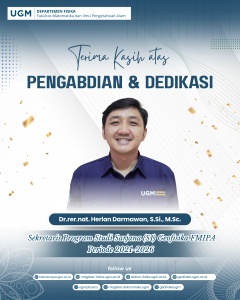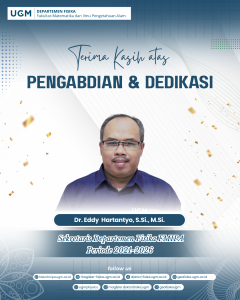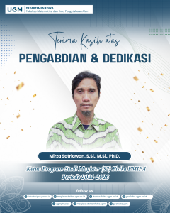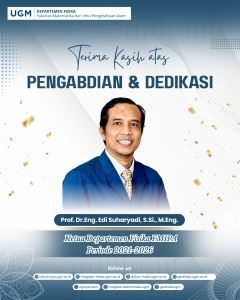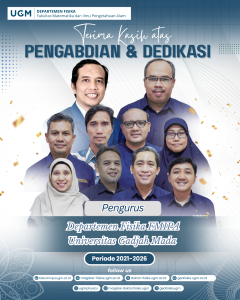 The Department of Physics FMIPA UGM expresses its sincere appreciation for all the service rendered. May the dedication and hard work of the management serve as an inspiration and continue to provide a positive and sustainable impact on the development of the institution, the academic community, and society at large.